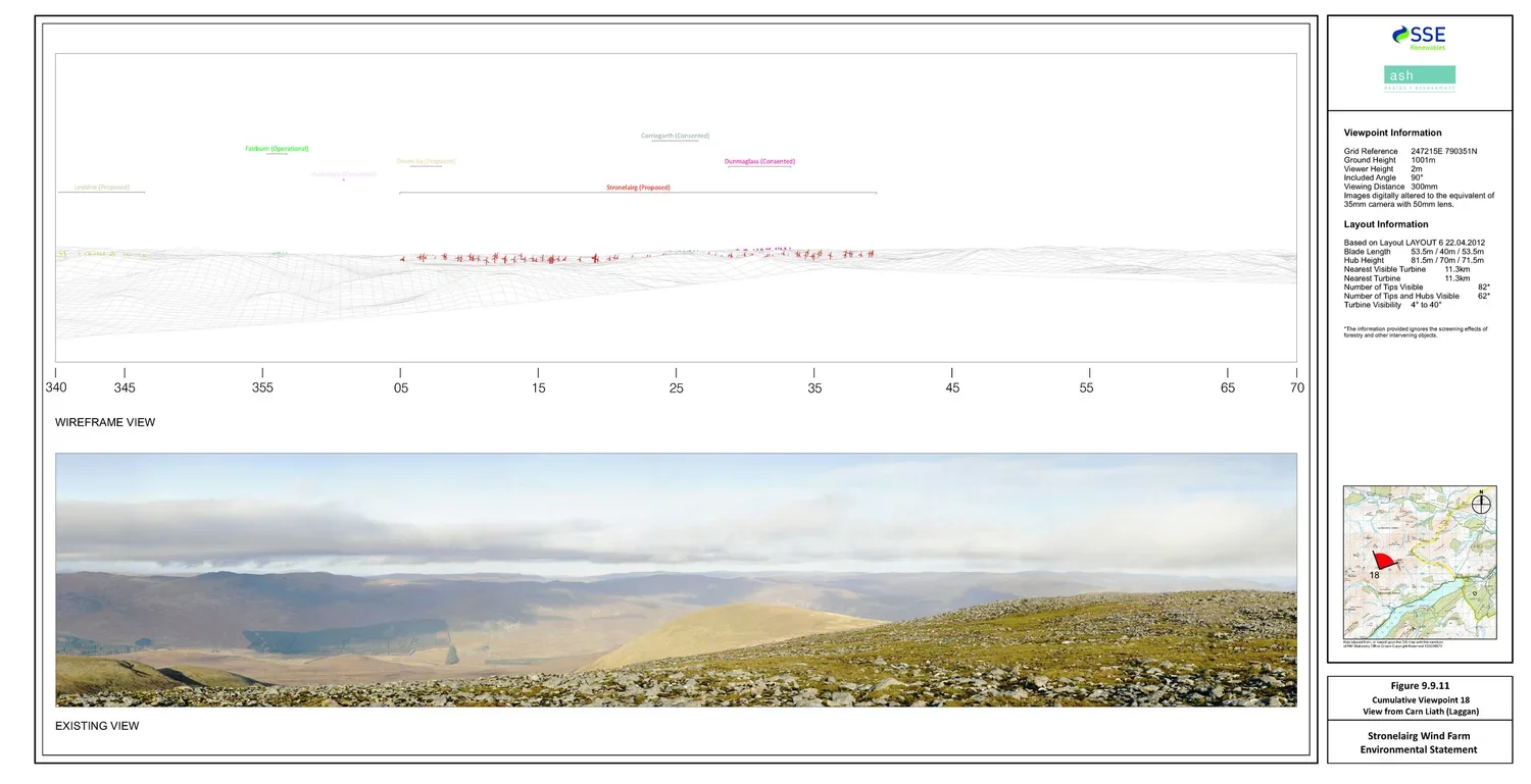 ASH's in-house specialists carried out the landscape and visual impact assessment. This involved detailed fieldwork, analysis of landscape and visual receptors, and the production of photomontages to illustrate the potential visual impact of the development within the Monadhliath Mountains and the surrounding area.